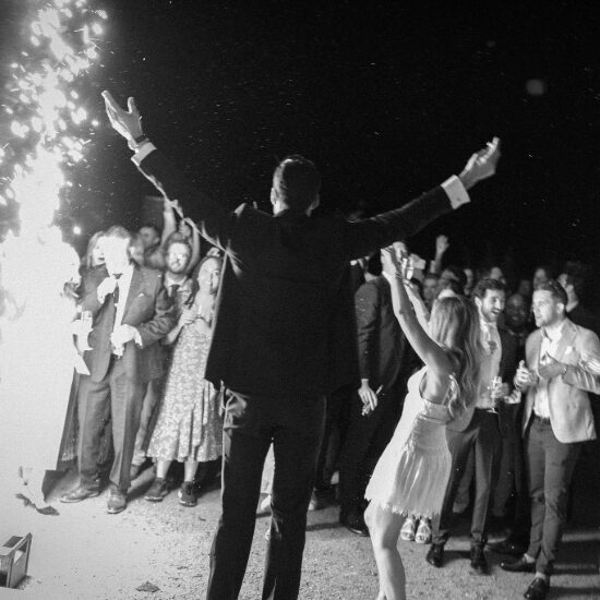 Cake was wheeled out for a chic, candlelit cut. Then came the magic: James took over the mic, performing the first lines of “No Letting Go” acapella as Claudia and Jamie danced on the terrace steps beneath a flurry of cold sparklers.