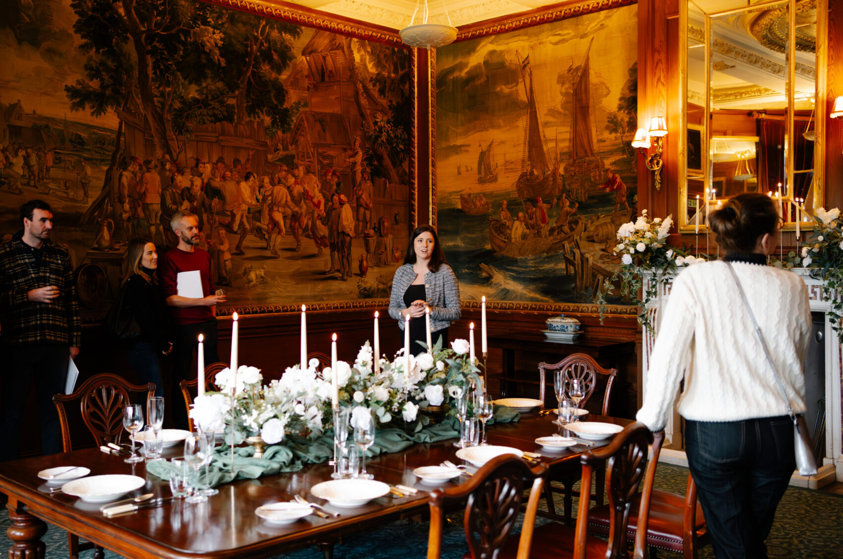 The showcase was styled with a soft, seasonal approach—blending romantic florals, gentle lighting, and refined details throughout the house. Diana Pinney worked her floral magic, dressing the venue with natural arrangements using Minterne’s own vases and urns to create a seamless, characterful look.
